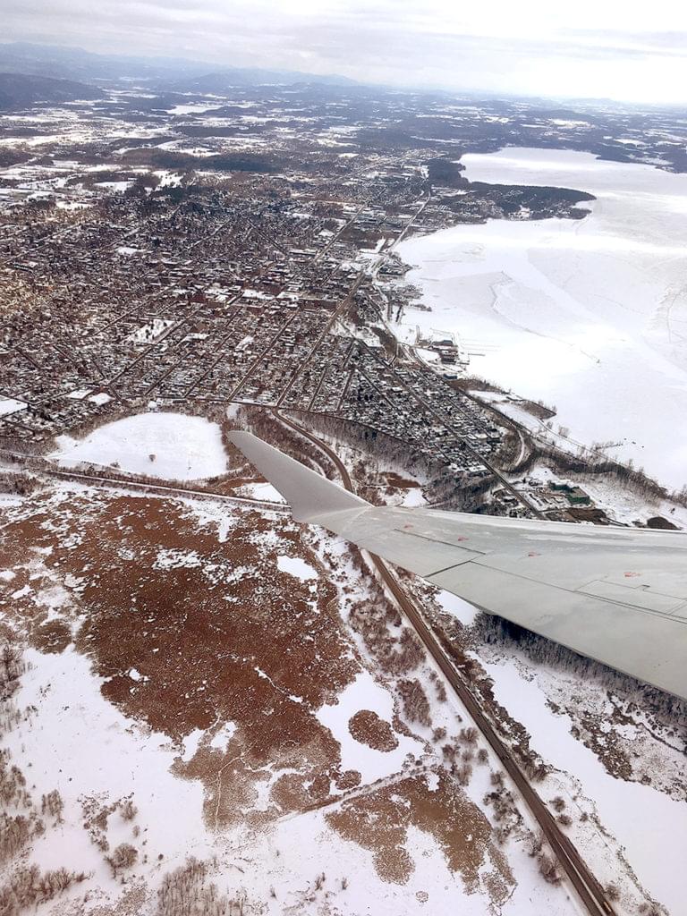 It’s hard to tell. Lake Champlain is close to being frozen over, but airline passengers have seen some open patches this week. While this photo provides no clues, it does provide a unique winter perspective on the Burlington waterfront and Shelburne Bay.